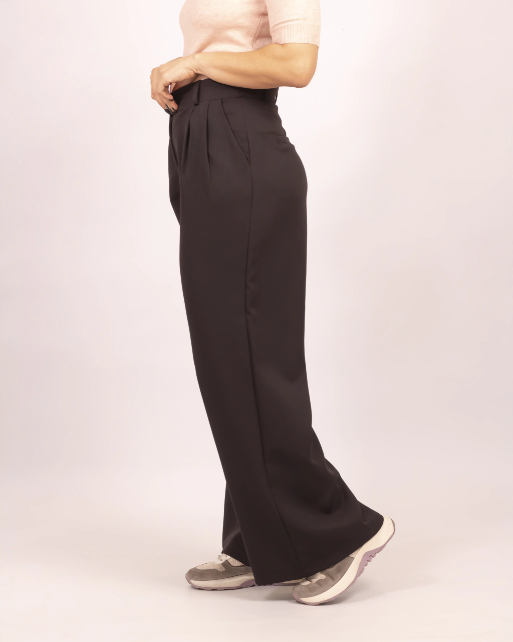 Pantalón sastrero wide leg con pinzas y tiro súper alto, pensado para sumar comodidad y estilo a todos tus looks.